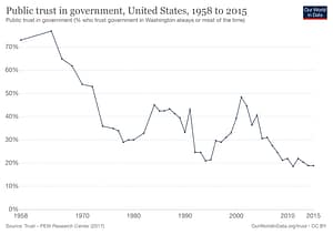 El caso de USA es claro. El hecho es que la confianza de los americanos en su gobierno es muy baja, hecho que concuerda con la percepción social existente.